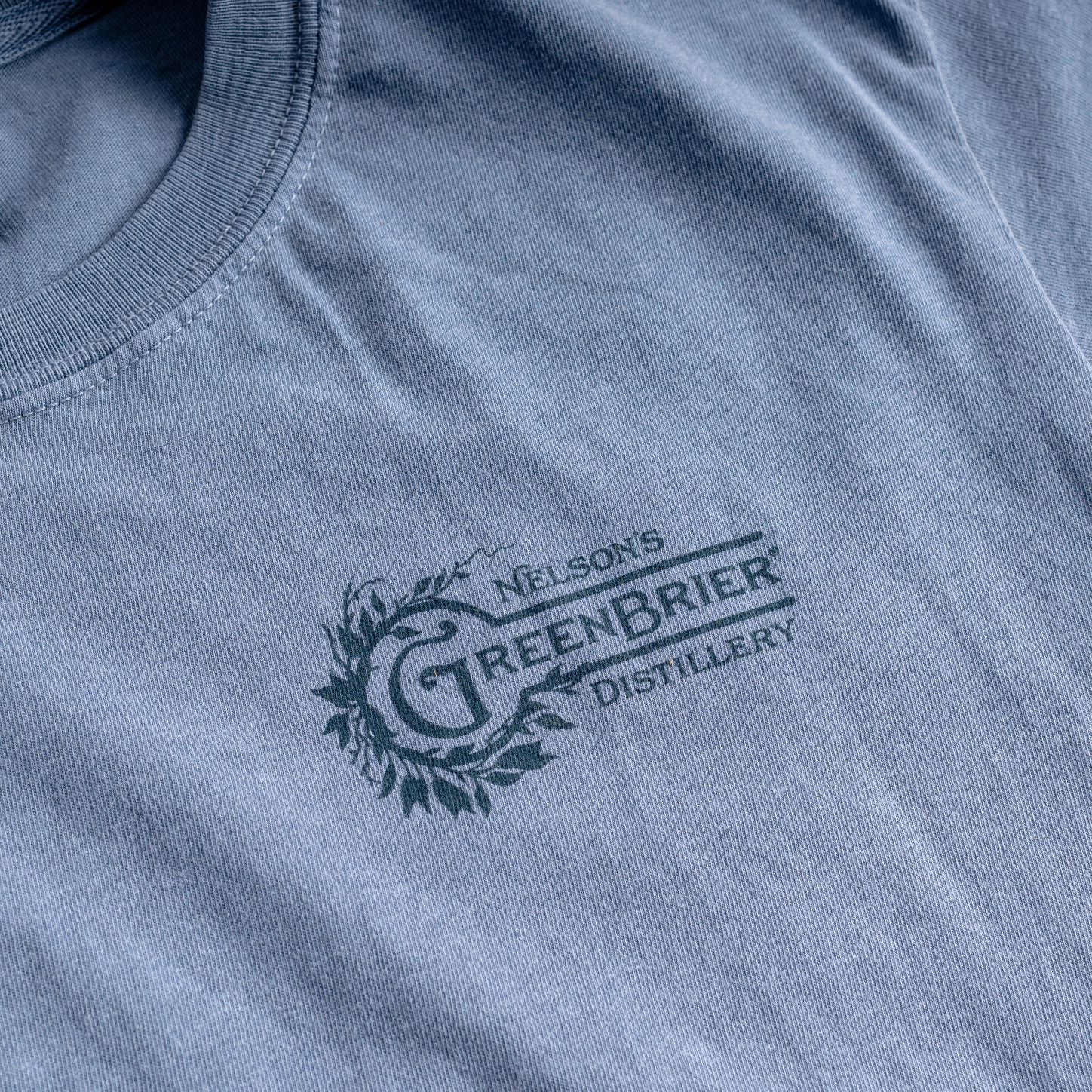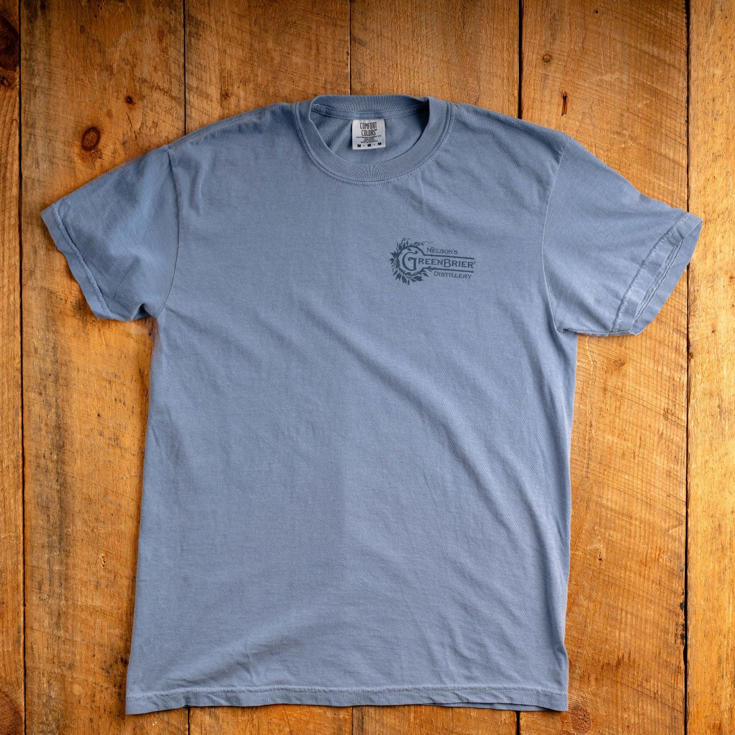 This tone-on-tone Comfort Colors denim blue shirt is sure to be one of those favorite go-to shirts. With rugged construction and a garment washed feel, it‚ printed in tonal ink with a full design on the back and our historic revival logo on the front chest.