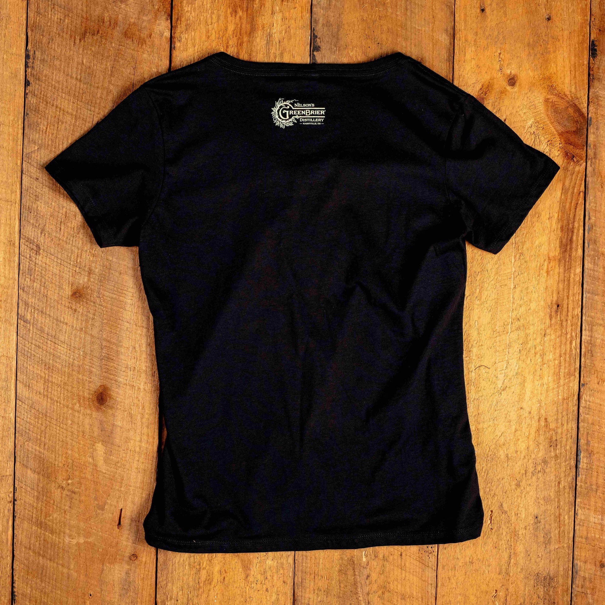 This comfy black ladies t-shirt is cut for women and printed with "Neat Not Sweet” on the front and the Nelson’s Green Brier TN Whiskey logo on the back. Perfect for a night in or a night out on the town.